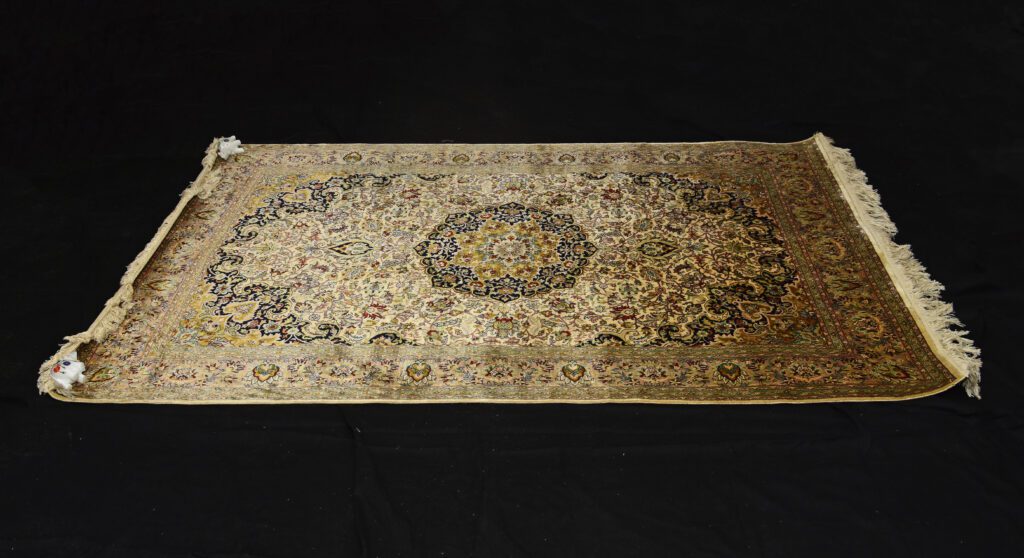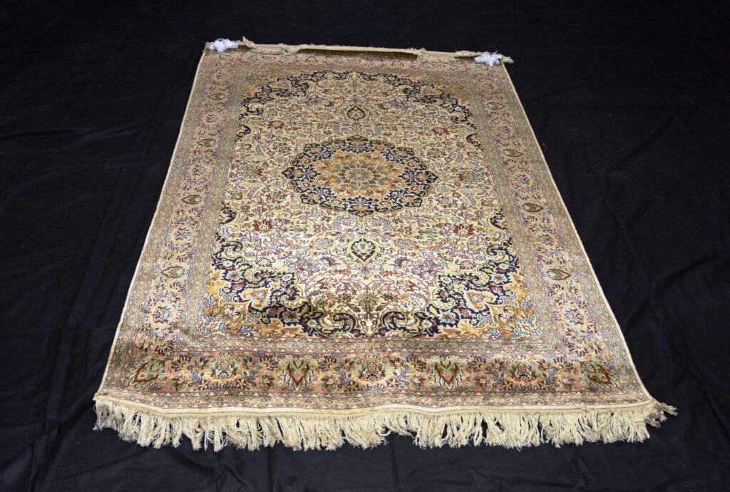 Making a silk-on-silk Kashmiri carpet is a labor-intensive and intricate process that involves several steps. Kashmiri carpets are known for their fine craftsmanship, intricate designs, and use of high-quality materials. Here’s a general overview of the process:
