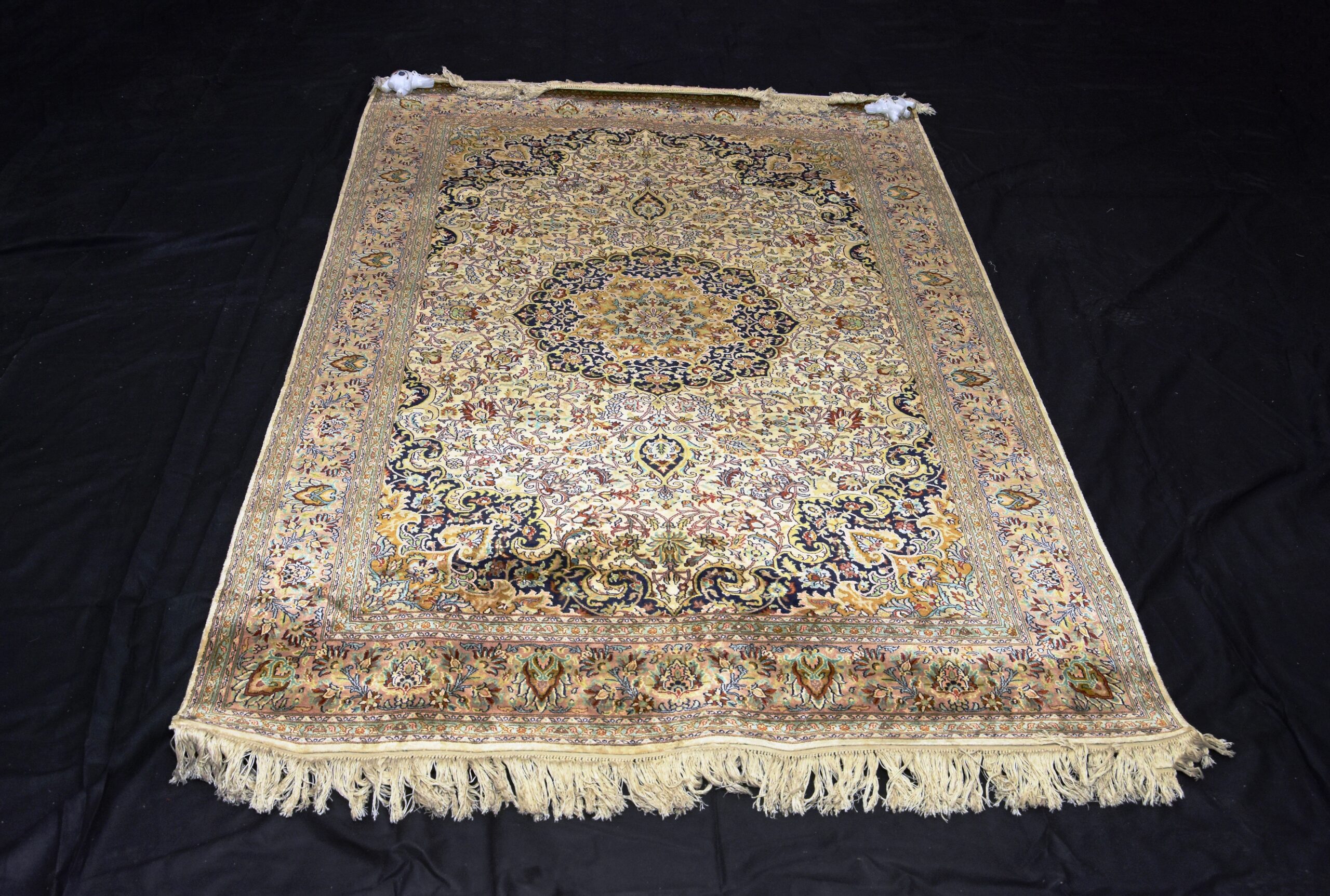 Antique Kashmiri Handknotted Silk on Silk Carpet