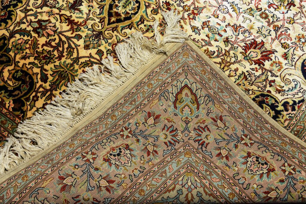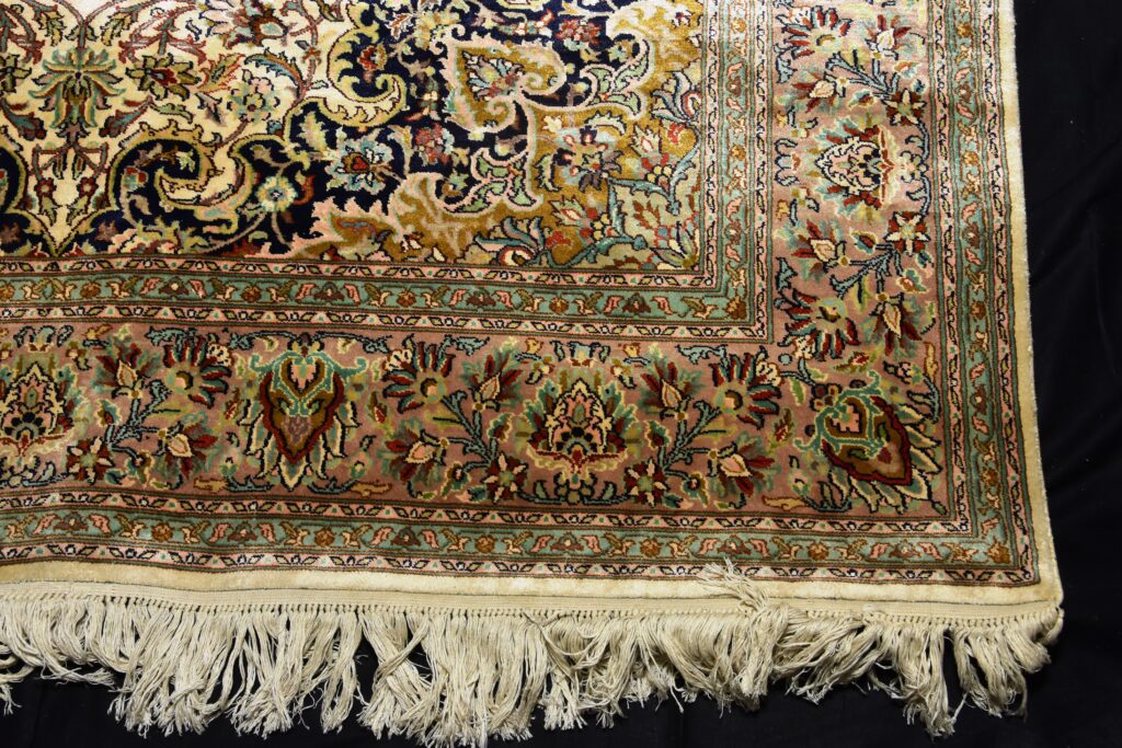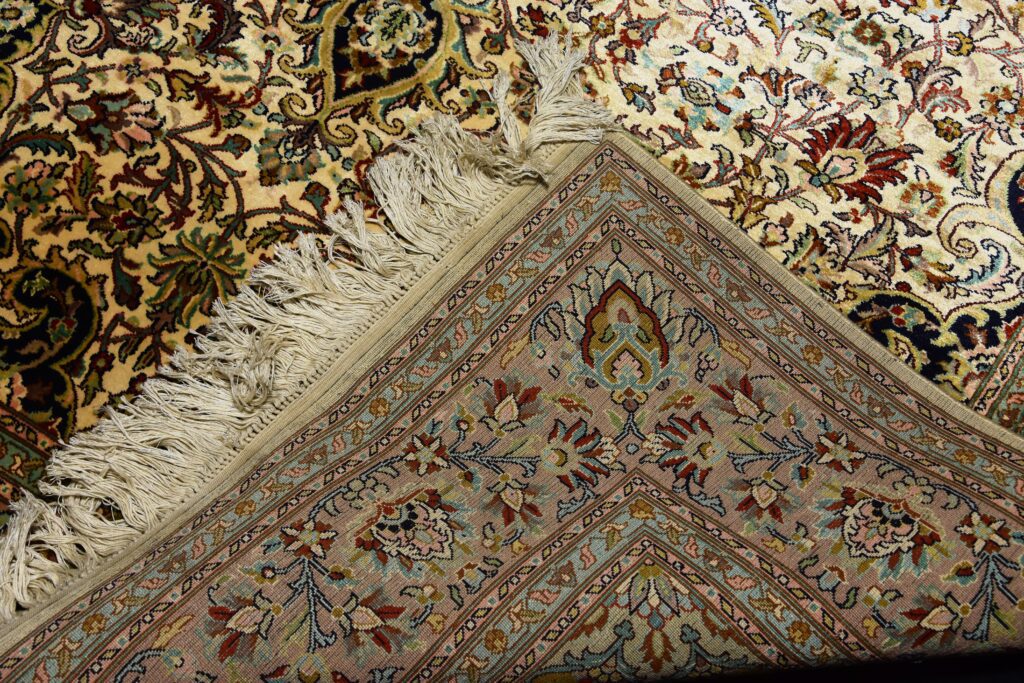 Throughout this process, the craftsmanship, attention to detail, and expertise of the artisans contribute to the creation of a high-quality silk-on-silk Kashmiri carpet, which is often considered a work of art.